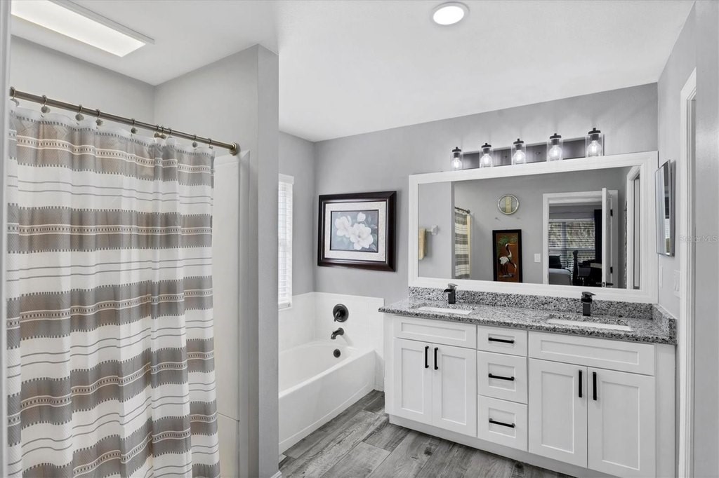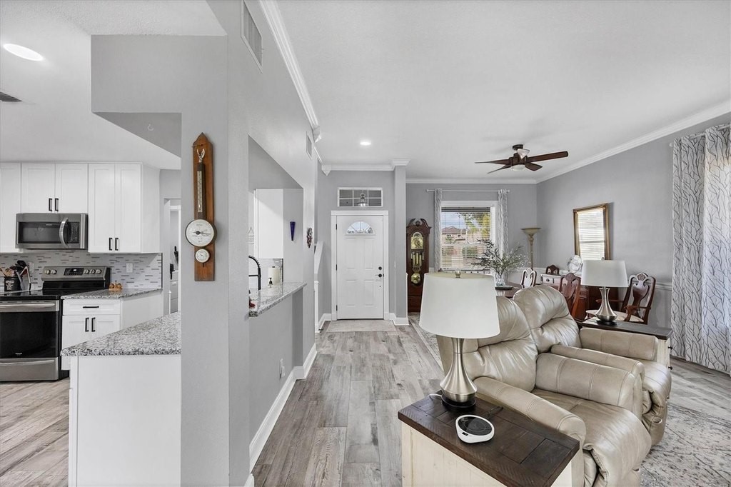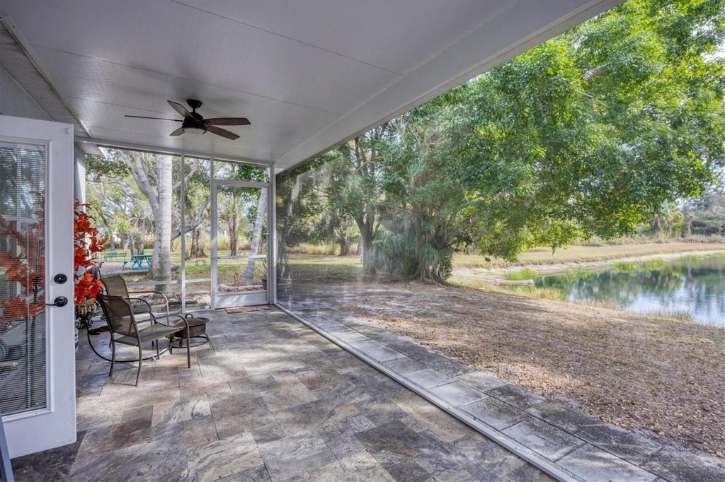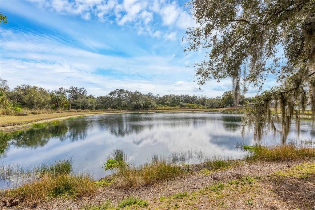 Welcome home to waterfront living in Gates Creek! Offering over 2,000 square feet of air-conditioned living space, this 3-bedroom, 2-bath, split-floorplan home is designed for easy, low-maintenance Florida living with tile flooring throughout the main living areas. The southern exposure fills the home with natural light and showcases long water views and a natural boundary, with only one direct neighbor and a neighborhood park conveniently located right next door. The fully updated eat-in kitchen features shaker-style cabinetry, stainless-steel appliances, granite countertops, and a raised breakfast bar for additional seating. A formal dining room provides the perfect space for entertaining family and friends. The first-floor primary suite offers a spacious walk-in closet and an expansive ensuite bath with garden tub, separate shower, and dual vanities, (including one with a separate entrance that can function as a powder room). Enjoy Florida outdoor living at its finest on the enclosed, single-panel screened lanai (2021) overlooking the water. Additional highlights include a new roof (2018), no CDD fees, and very low HOA fees. Ideally located just 2 miles from I-75, with quick access to Costco, Lakewood Ranch, multiple golf courses, UTC shopping and dining, and only 17 miles to the Gulf beaches and Anna Maria Island.